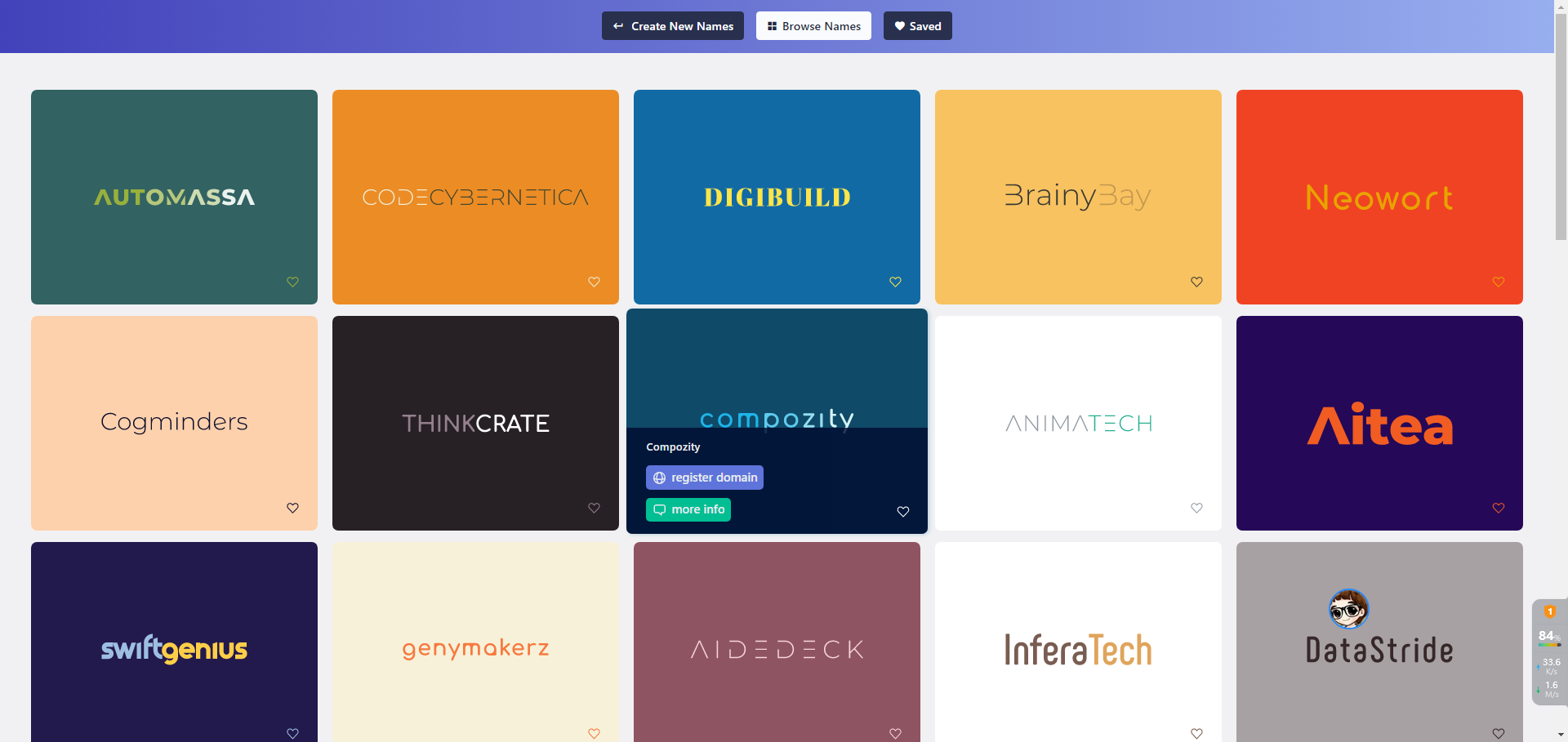 Namelix 是一款利用人工稚嫩模型快速生成企业品牌名称的在线工具,你只需要是如你的品牌信息关键词,Namelix 就能帮你生成简短、朗朗上口的名字和logo。