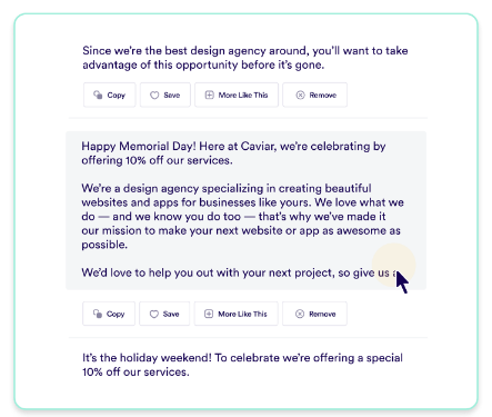 3,筛选结果我们的 AI 内容生成器为您正在进行的每个活动提供多种选择。