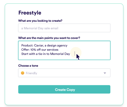 1,输入您的文案项目从电子邮件、社交帖子、长篇博文等中进行选择!