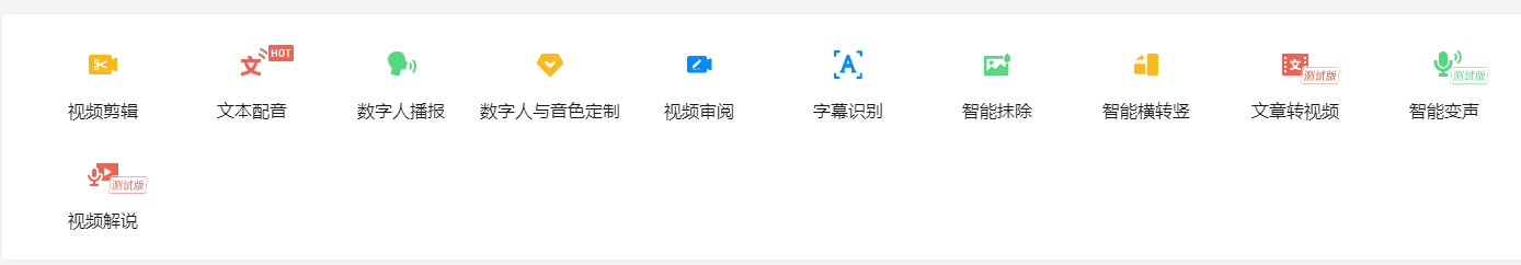 内涵多种AI视频创作辅助工具,如:文本配音、字幕识别、智能抹除、文章转视频、数字人播报等!!